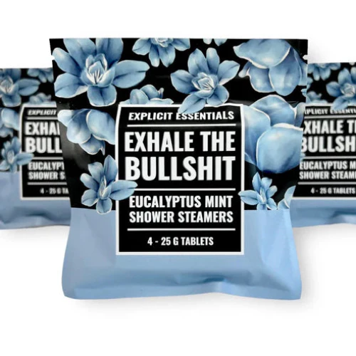 Relax and unwind with our Exhale the Bullsh!T Shower Steamers. Each pack contains 4 steamers infused with refreshing eucalyptus, designed to turn your everyday shower into a calming, spa-like escape. Handmade in small batches with natural, organic ingredients, these steamers are vegan, cruelty-free, and paraben-free, giving you a rejuvenating experience every time.